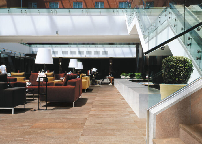 Amazzonia is the porcelain stoneware tile collection perfect for any surface both indoors and out. The excellent properties of this porcelain stoneware make these tiles extremely versatile. That’s why the Amazzonia collection is perfect for any indoor or outdoor setting and any style, whether classic, contemporary, urban chic, or minimalist. These rectified stone-like tiles come with a natural finish for interiors and an anti-slip finish and 20 mm thickness for exteriors. They are the ideal choice for creating visual continuity and tiling terraces, patios, verandas, and turf or gravel walkways.